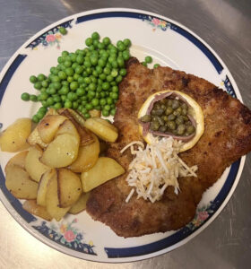 Dagens ret serveres kun på bordreservation frem til kl. 15 og kan nydes i Den lille Café mellem kl. 18.00-19.30.